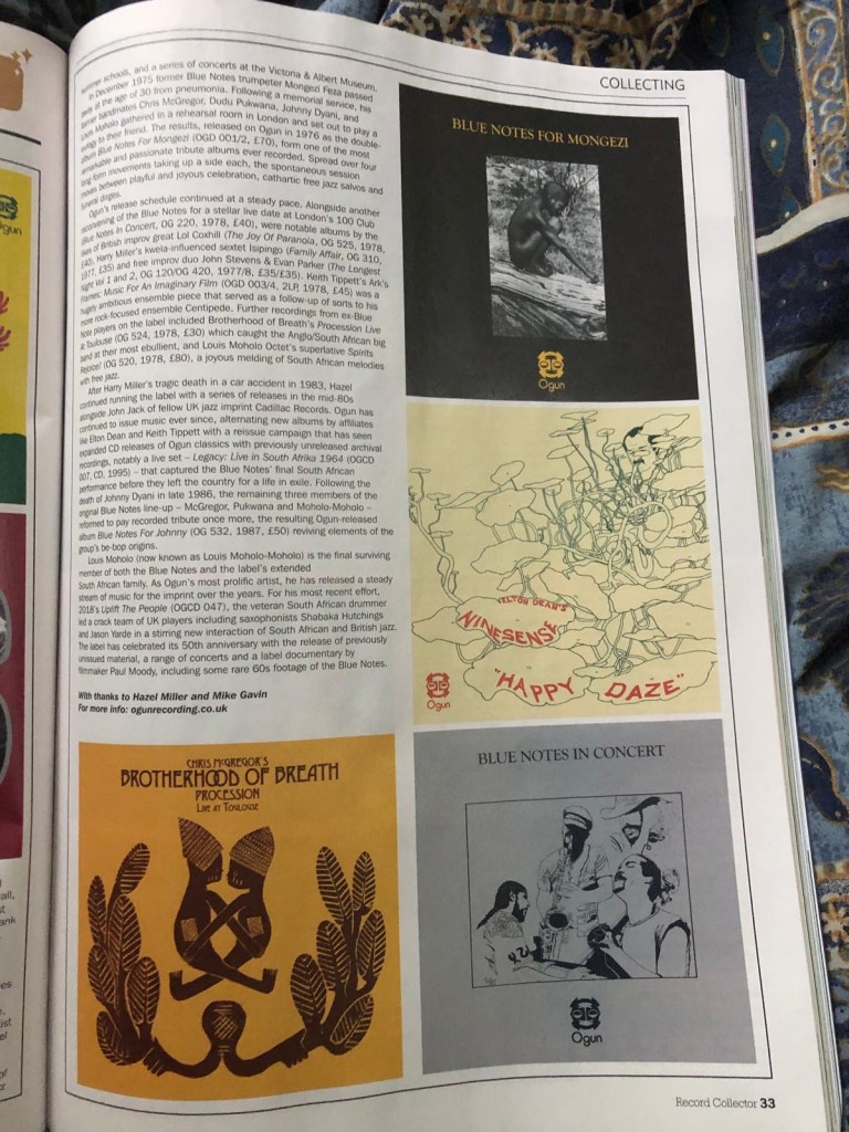 For the latest issue I’ve reviewed the wonderful Cadillac/Ogun Records 50th birthday celebration at Café OTO featuring Mike Westbrook, Alexander Hawkins Jason Yarde, Neil Charles, Ntshuks Bonga, Steve Noble et al.