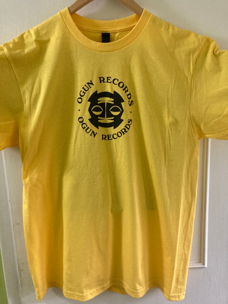 The legendary Ogun Records logo once again graces a T-shirt! Black on gold. Soft cotton Gildan shirt – partners with Better Cotton to improve cotton farming globally. Made with OEKO-TEX certified low-impact dyes. Posted in 100% biodegradable packaging. T shirt design by frodedesign.com. Manufacture by www.noisemerch.com.